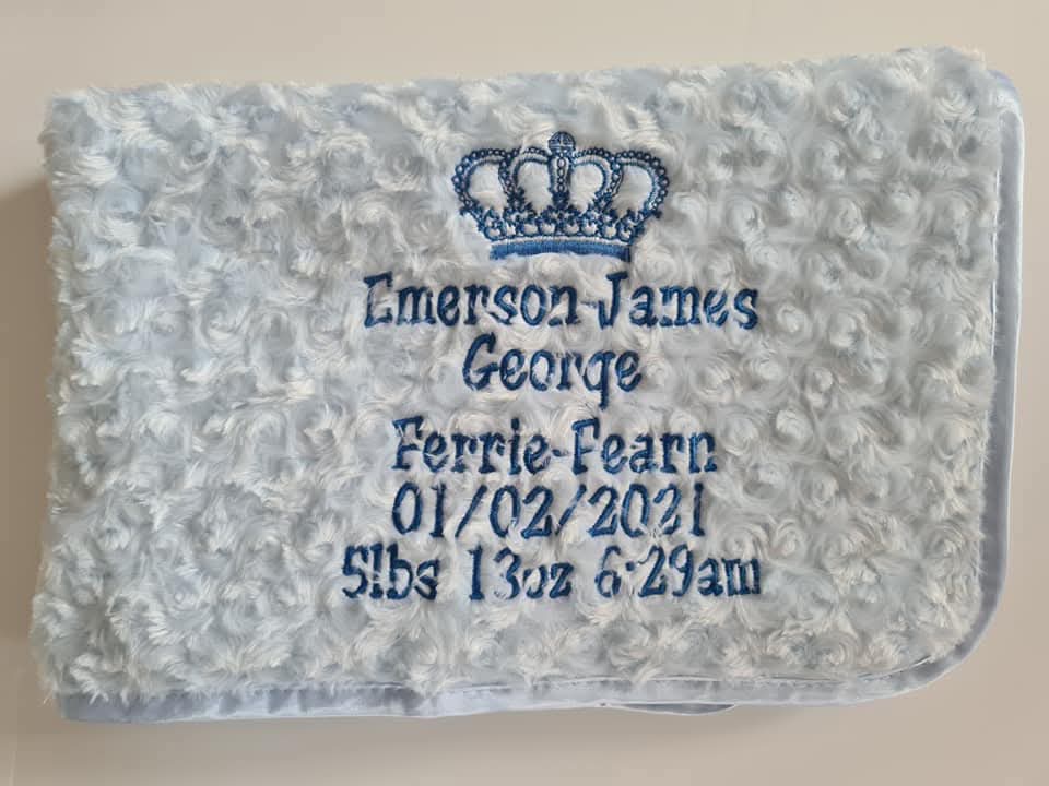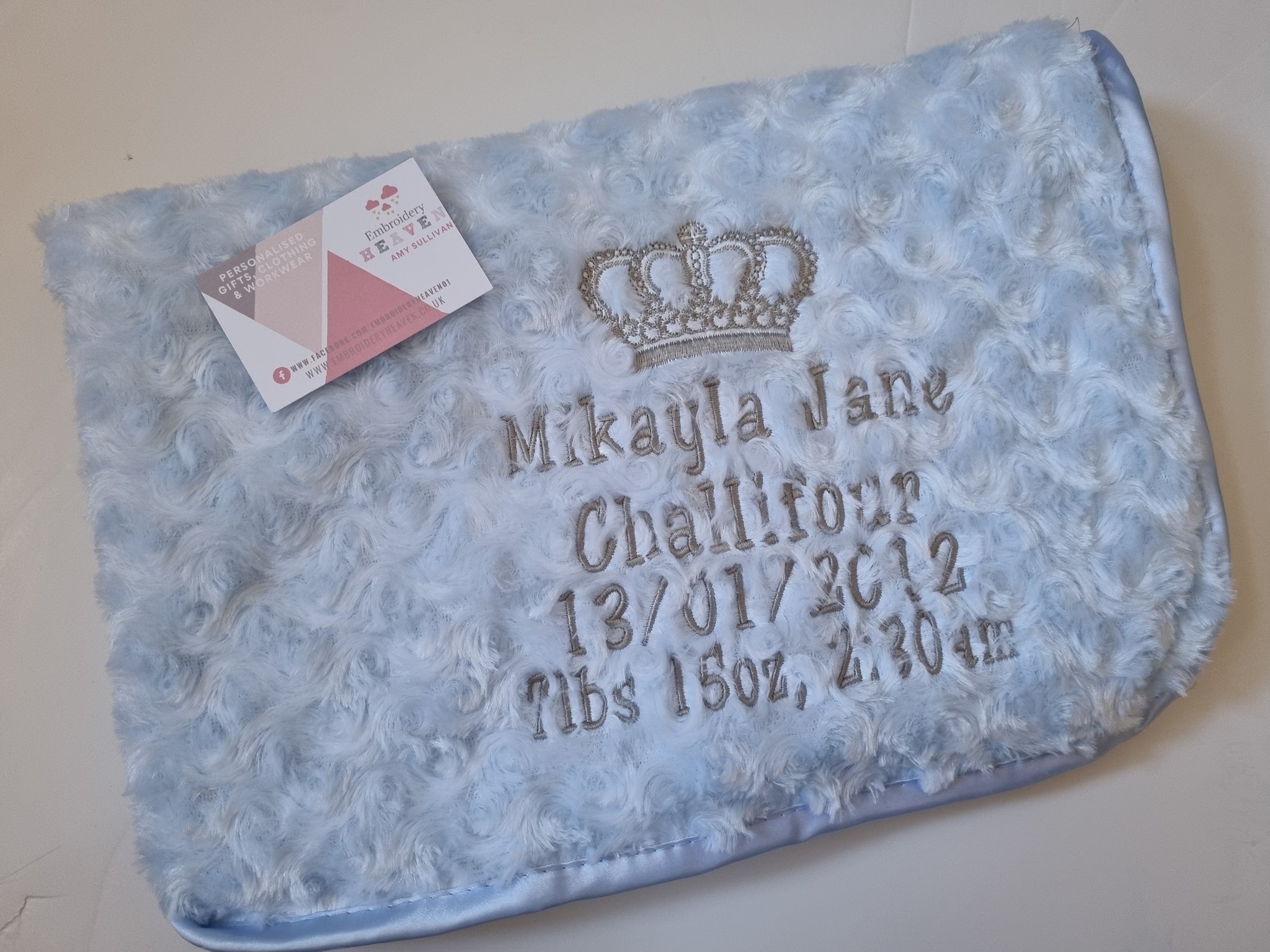 ✨ This listing includes custom embroidery of a name and birth details (e.g., date, time, weight) or a short personalised message, all neatly stitched in the corner of the blanket.