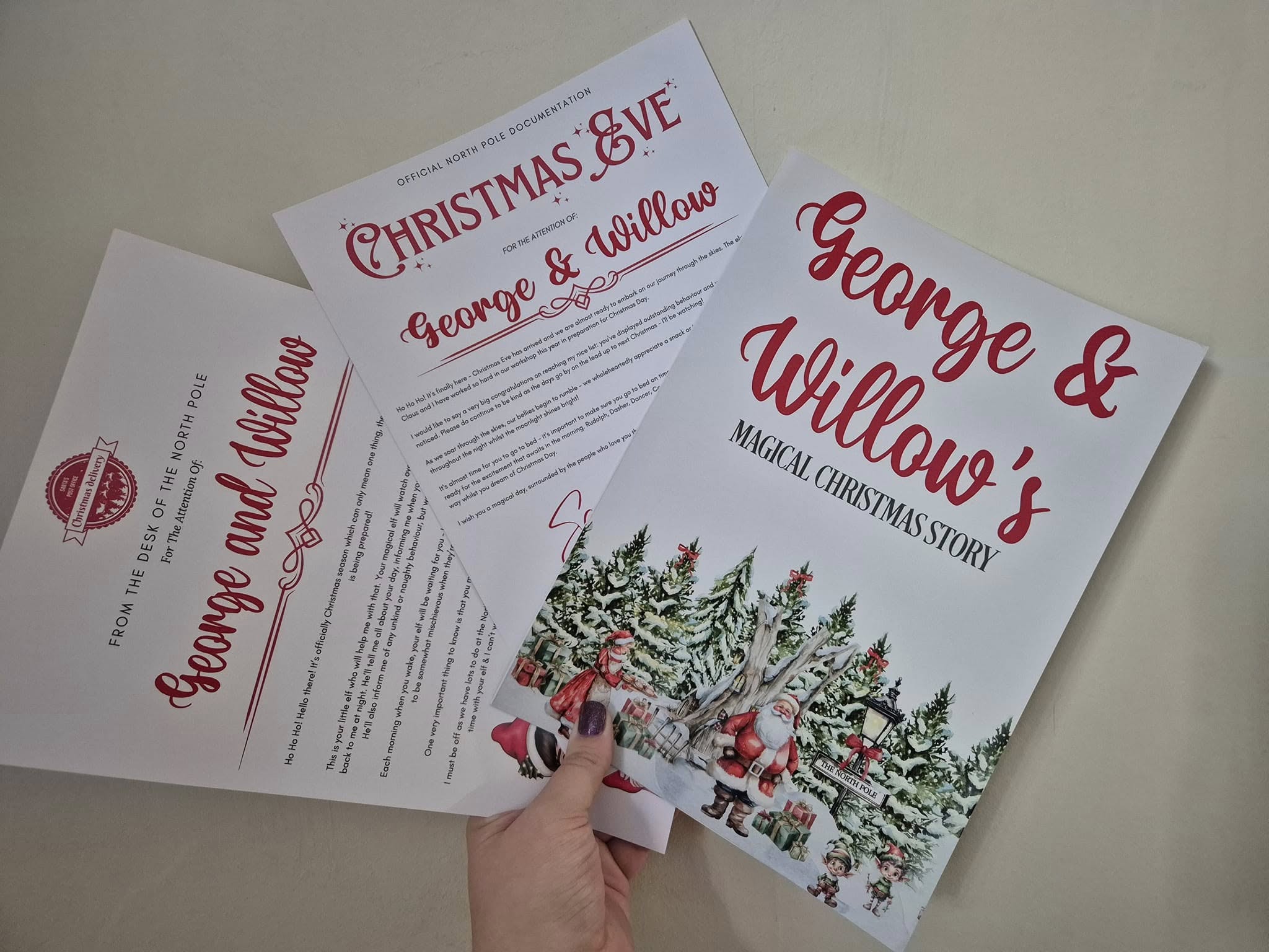 This magical set brings the full North Pole experience to life with a personalised Elf Arrival Letter, Elf Goodbye Letter, and a beautifully written Christmas Story starring your child.