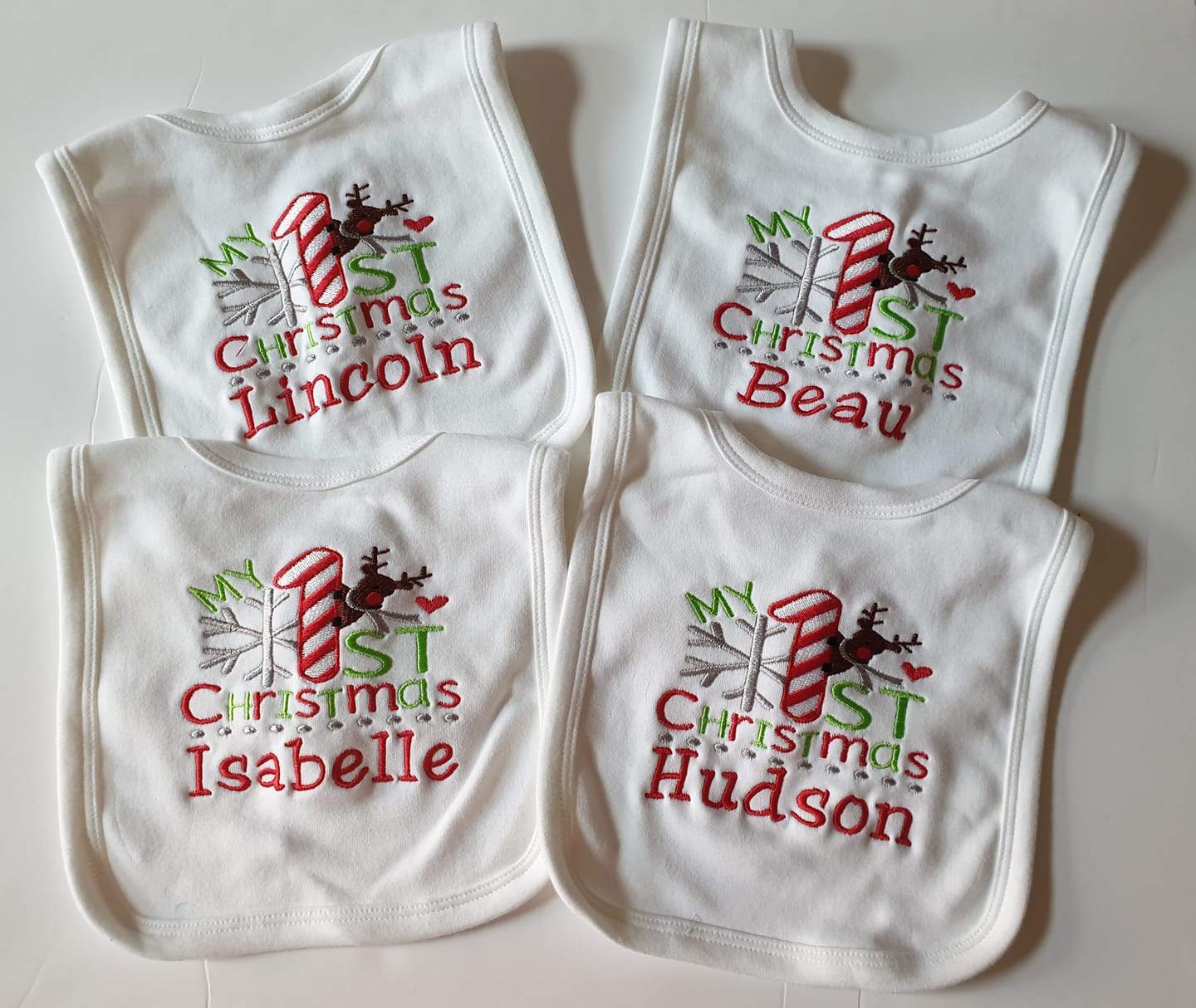 Whether you’re creating a Christmas Eve box, buying a keepsake for a new baby, or completing your little one’s festive outfit, this personalised bib is a cute and practical must-have.