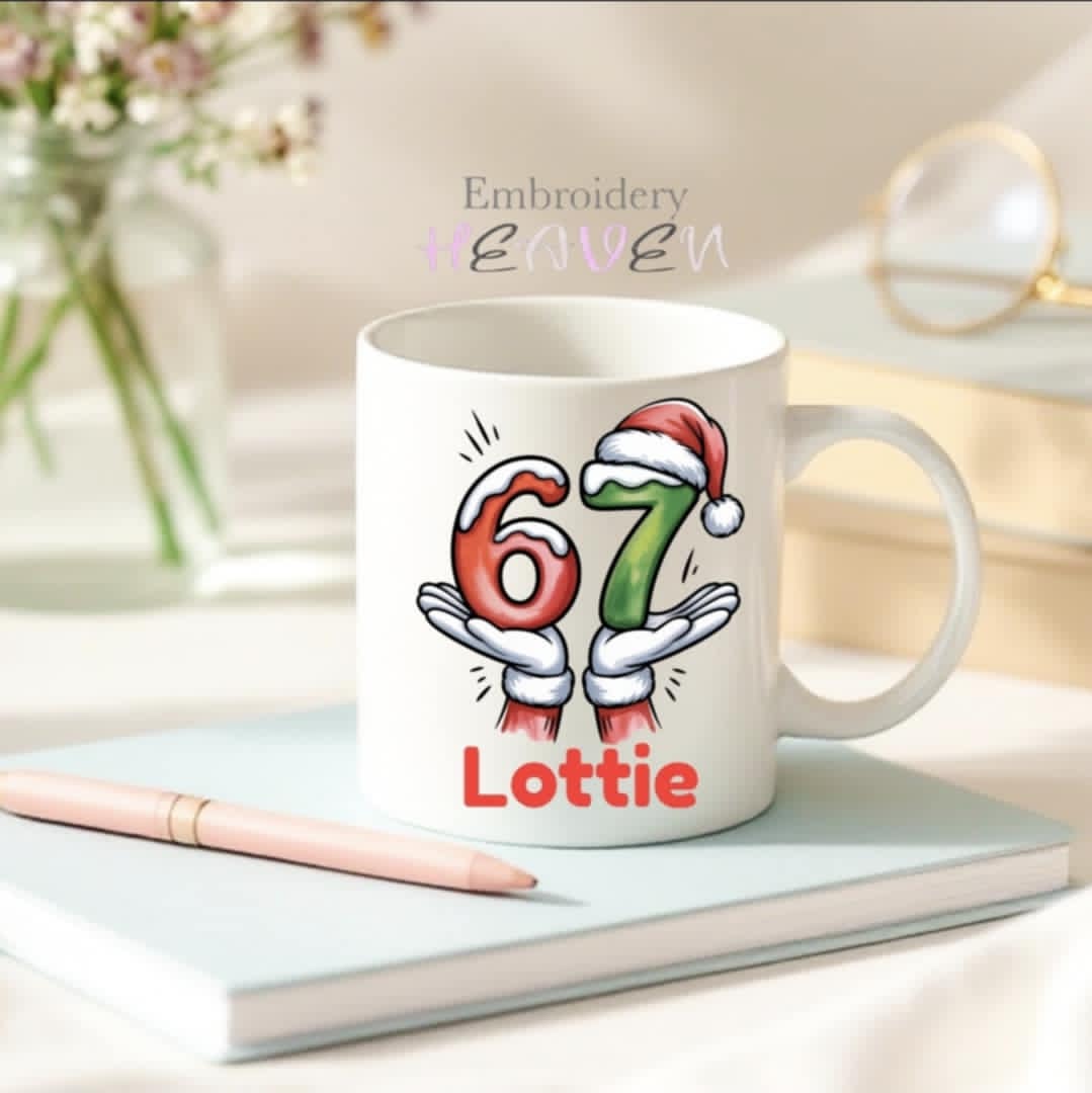 Stay ahead of the trend with our “67 Design: Latest Craze” Personalised 11oz Mug. Featuring a bold, modern aesthetic inspired by the newest design wave, this mug is perfect for anyone who loves stylish, standout drinkware.